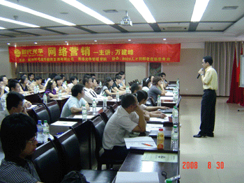2008年8月30日,《网络营销——让网络打通您的销售市场》课程走进了杭州时代光华的公开课堂。此次授课的是时代光华特聘高级讲师万建峰老师,万老师具有10年的网络创业经验、5年的公司管理和实践经验,拥有管理、市场、营销、电子商务等多项特长,涉足化工行业、IT及互联网行业,形成了自身独特的管理理念和风格。万老师也成功运营着两个商业网站,擅长运用网络对公司品牌进行推广及产品营销设计。
